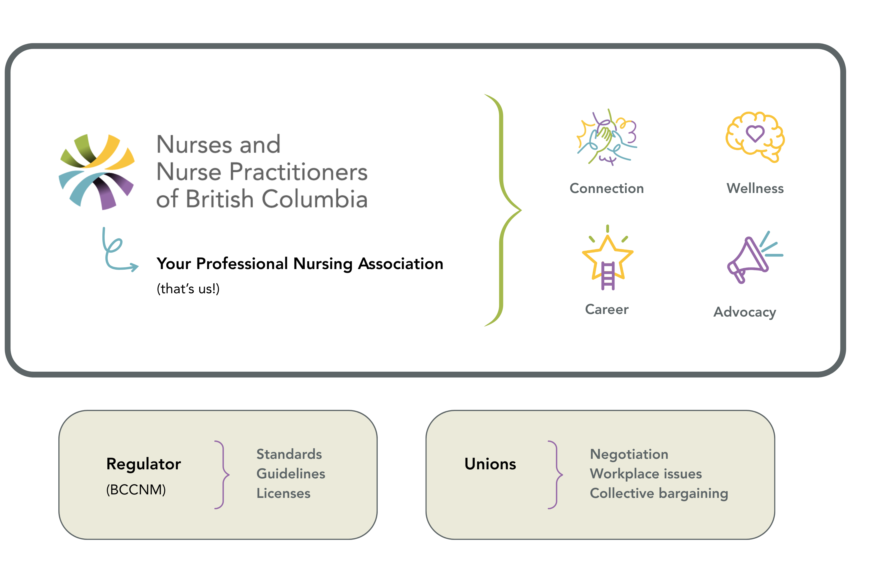 NNPBC, the nursing professional association in BC, fulfills a role distinct from other nursing organizations that exist in BC.